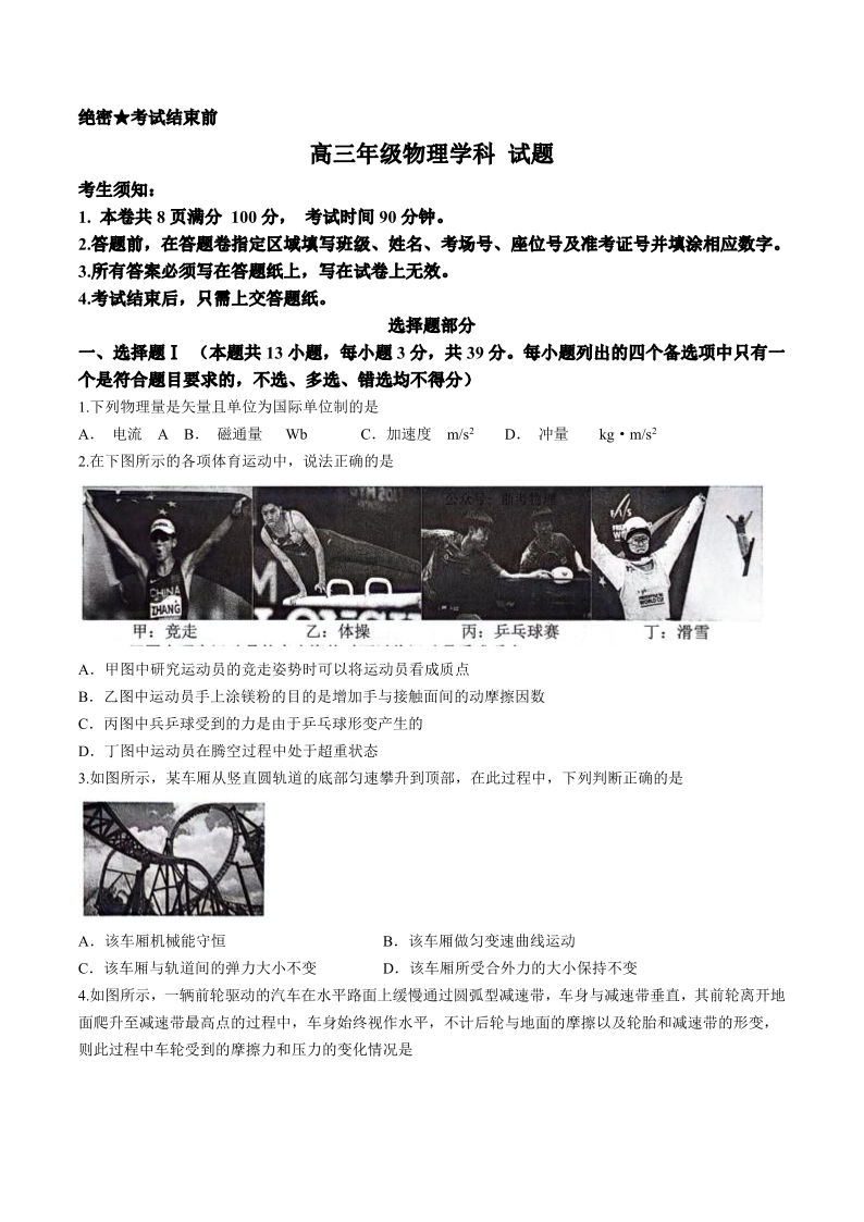 浙江省北斗星盟2024届高三下学期5月适应性联考+物理