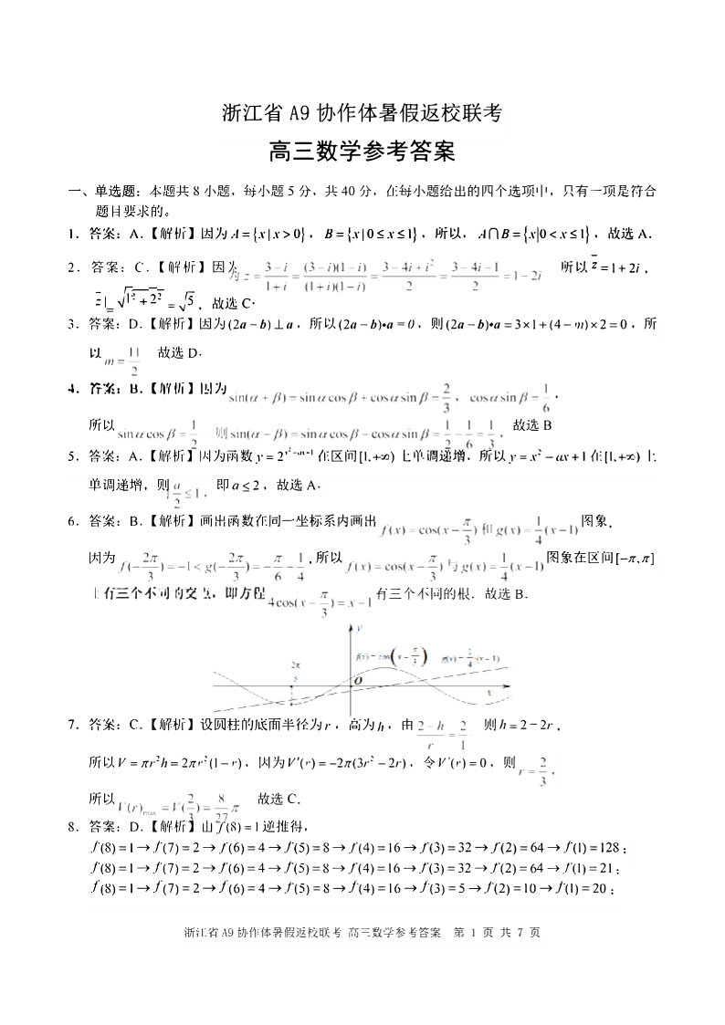 浙江省A9协作体2025届2024年8月高三年级八月暑期返校联考+数学答案