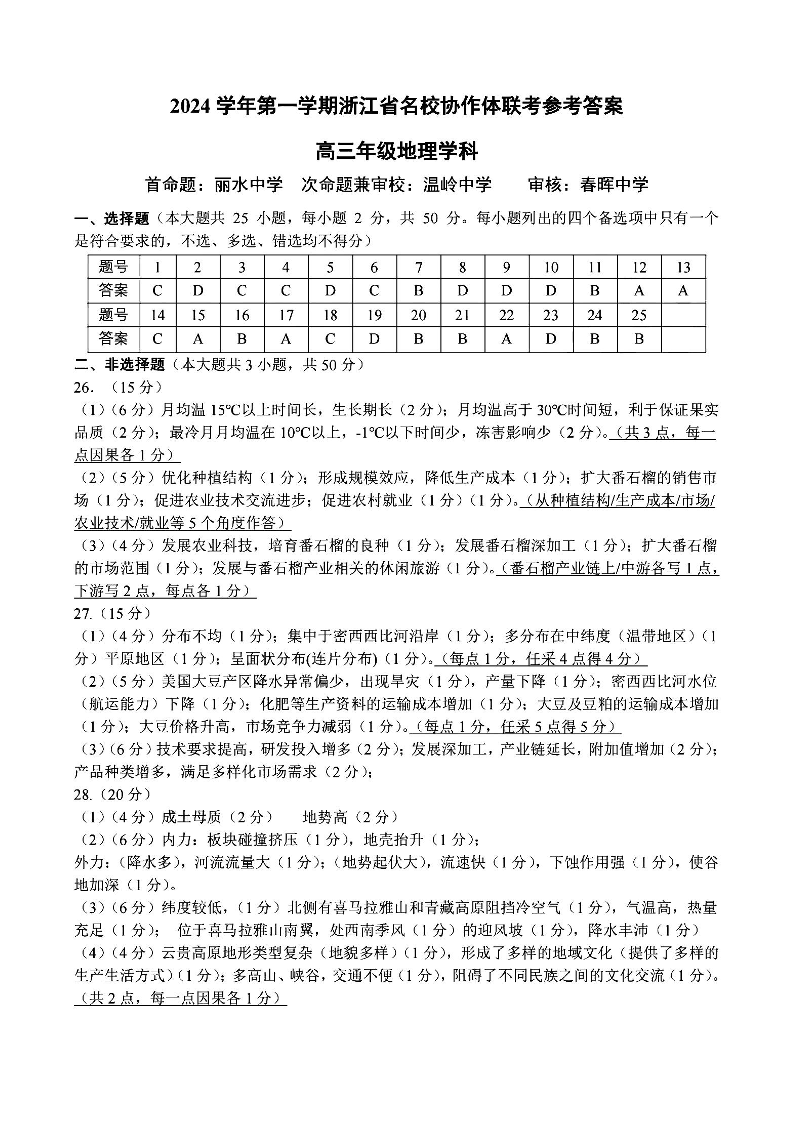 2025届浙江省G12名校协作体高三返校考+地理答案