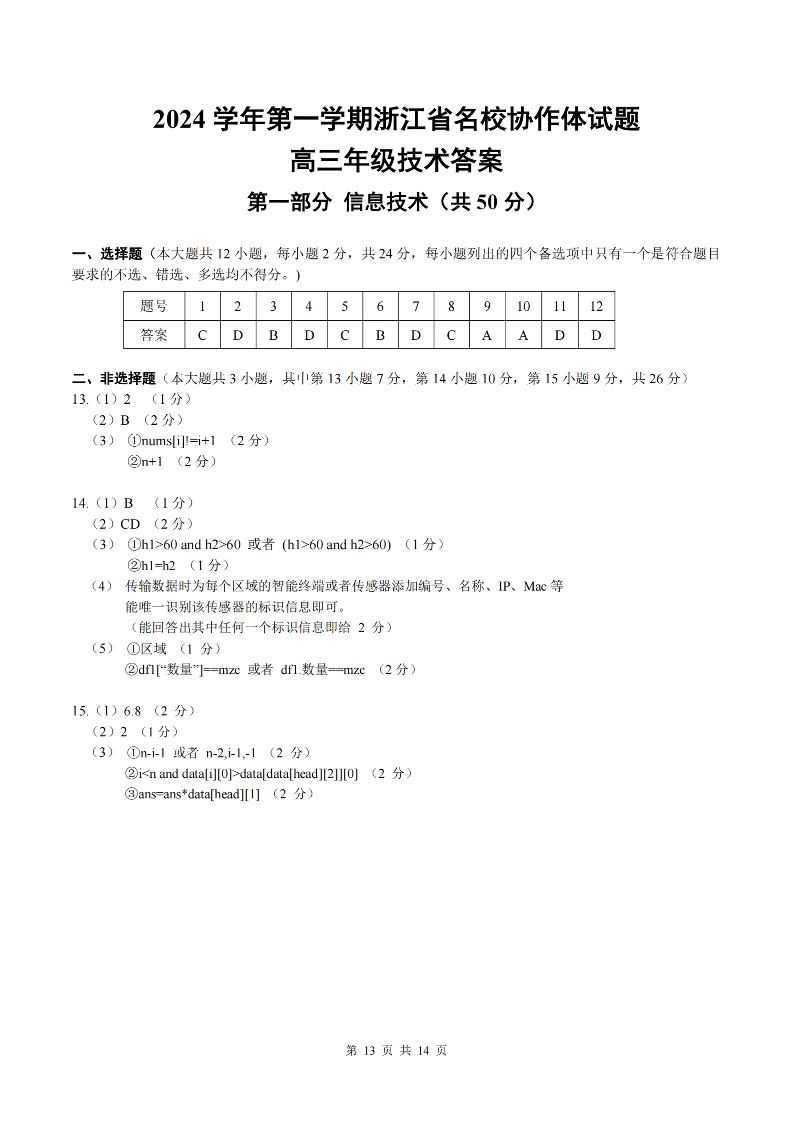 2025届浙江省G12名校协作体高三返校考+技术答案