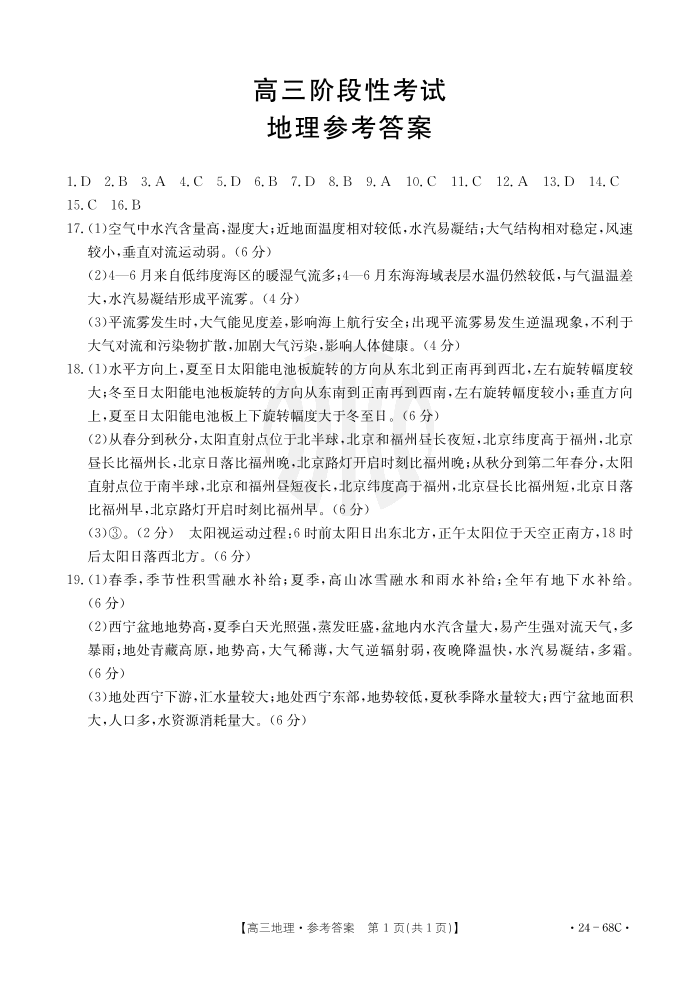 2024届江苏广东福建高三金太阳10月百万大联考 地理答案