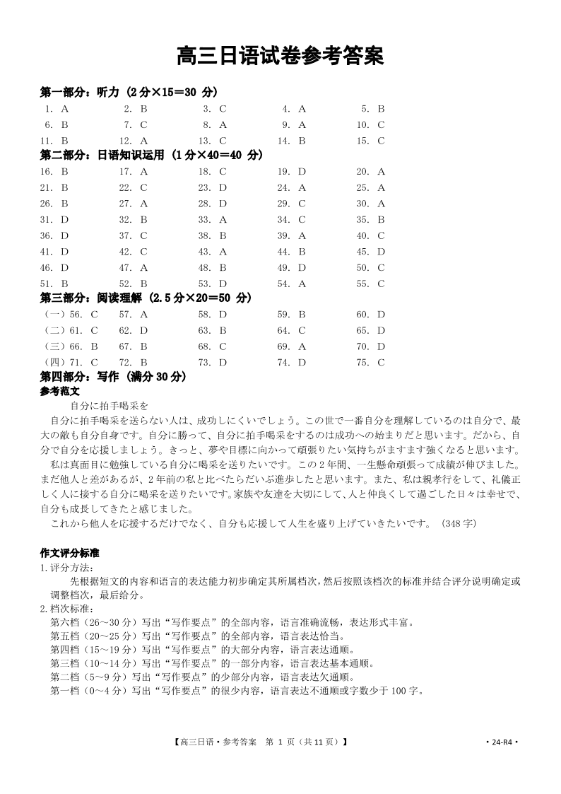 2024届江苏广东福建高三金太阳10月百万大联考 日语答案