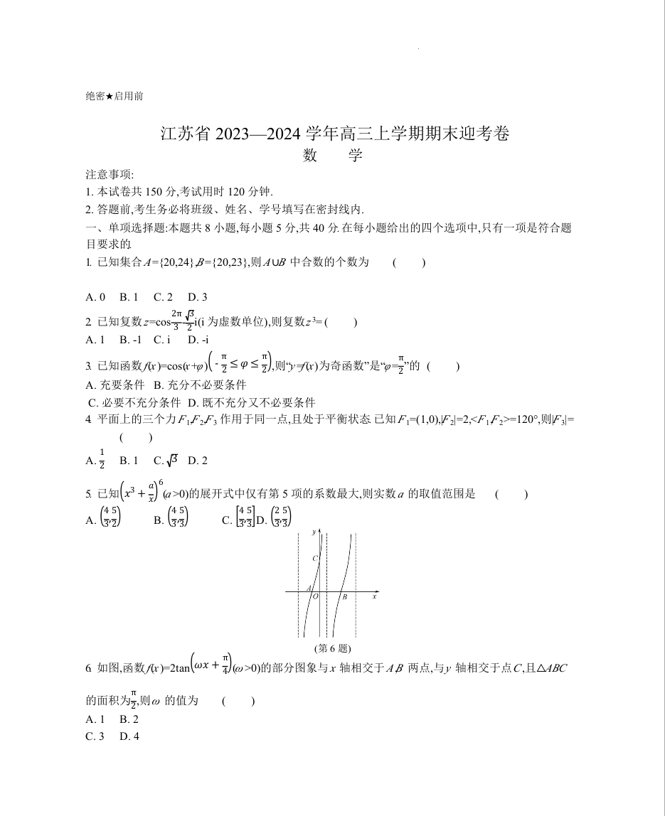 江苏省2023—2024学年高三上学期期末迎考卷 数学