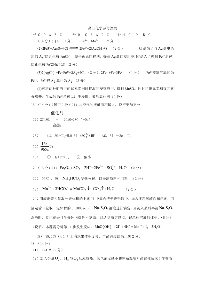江苏省常州市联盟学校2024届高三上学期10月学情调研 化学答案
