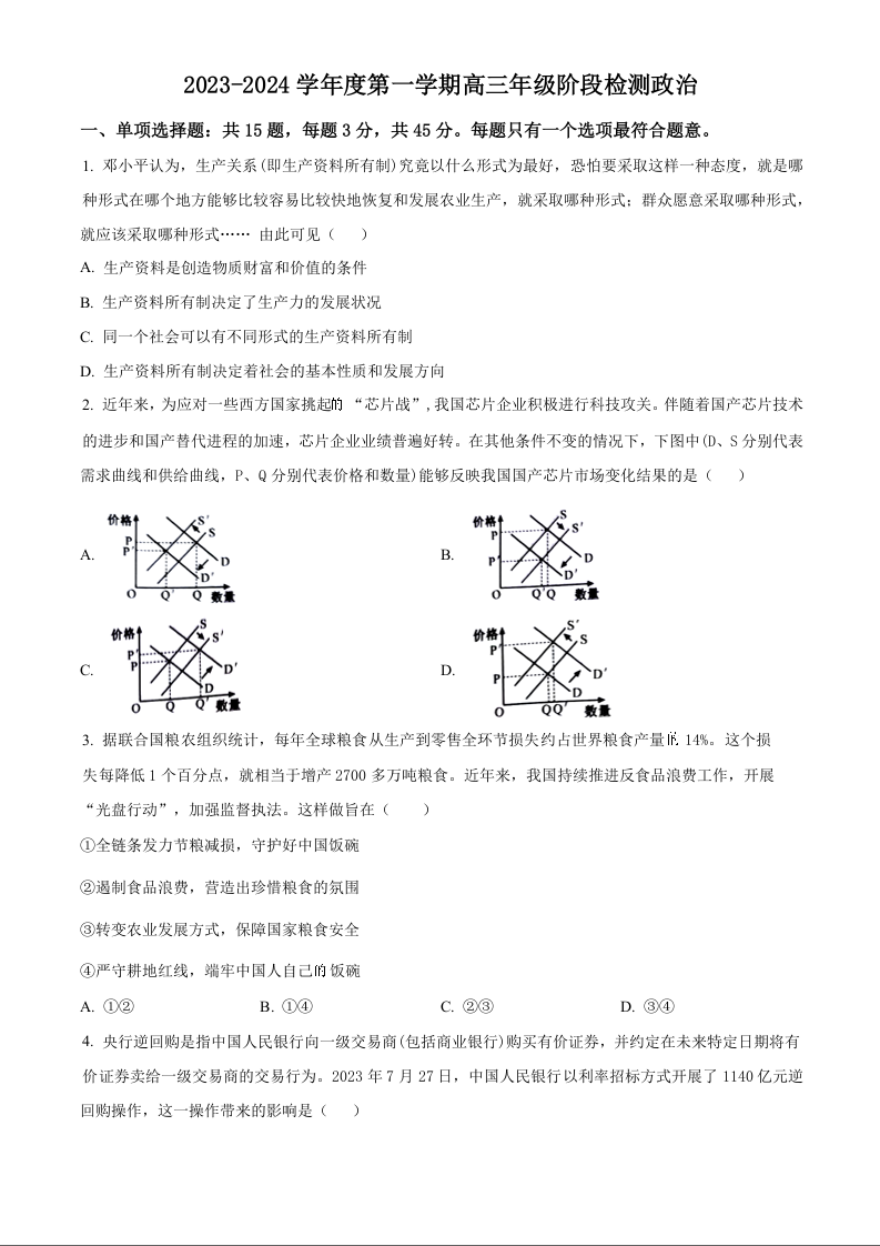 江苏省海安高级中学2023-2024学年高三上学期10月月考试题 政治