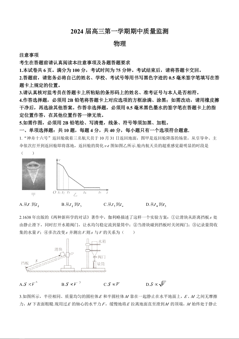 江苏省淮安、南通部分学校2023-2024学年高三上学期11月期中监测 物理