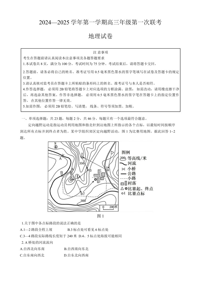 江苏省淮安市十校2024-2025学年高三上学期第一次联考+地理