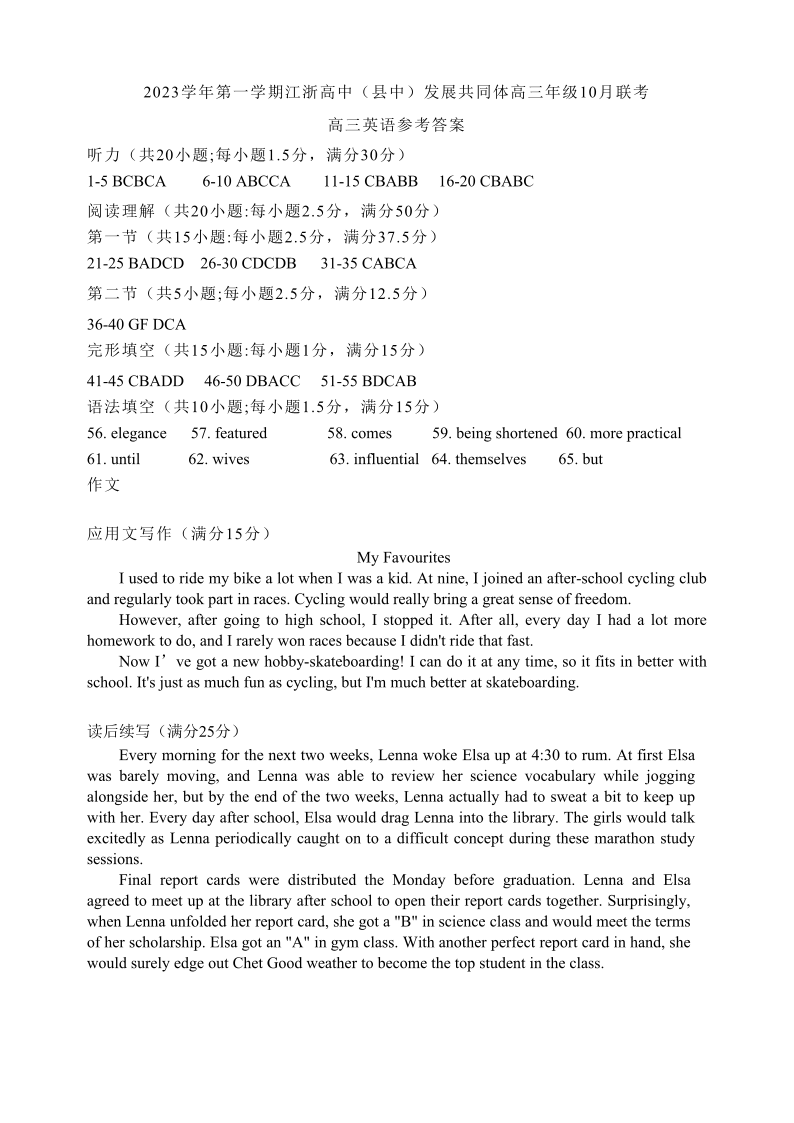 江苏省江浙高中发展共同体2023-2024学年高三上学期10月联考 英语答案
