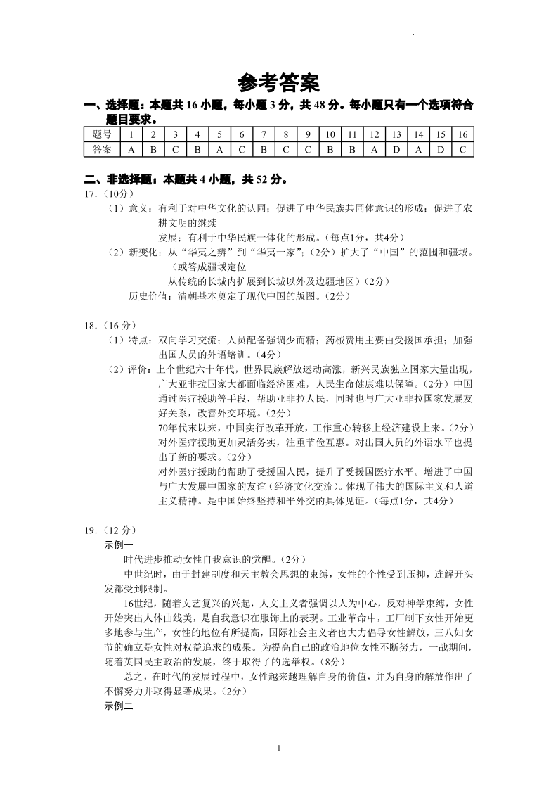 江苏省江浙高中发展共同体2023-2024学年高三上学期10月联考 历史答案