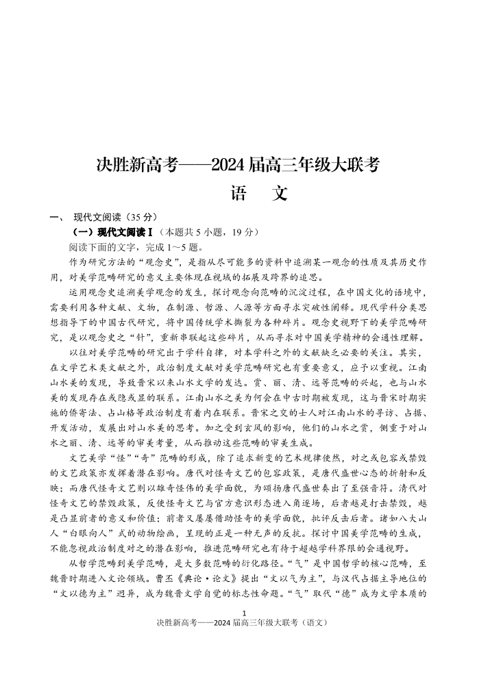 江苏省决胜新高考2023-2024学年高三上学期10月大联考 语文