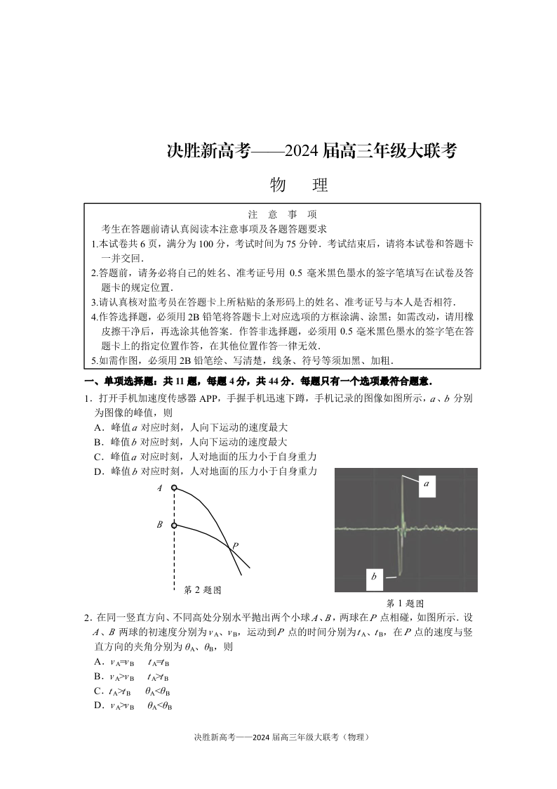 江苏省决胜新高考2023-2024学年高三上学期10月大联考 物理