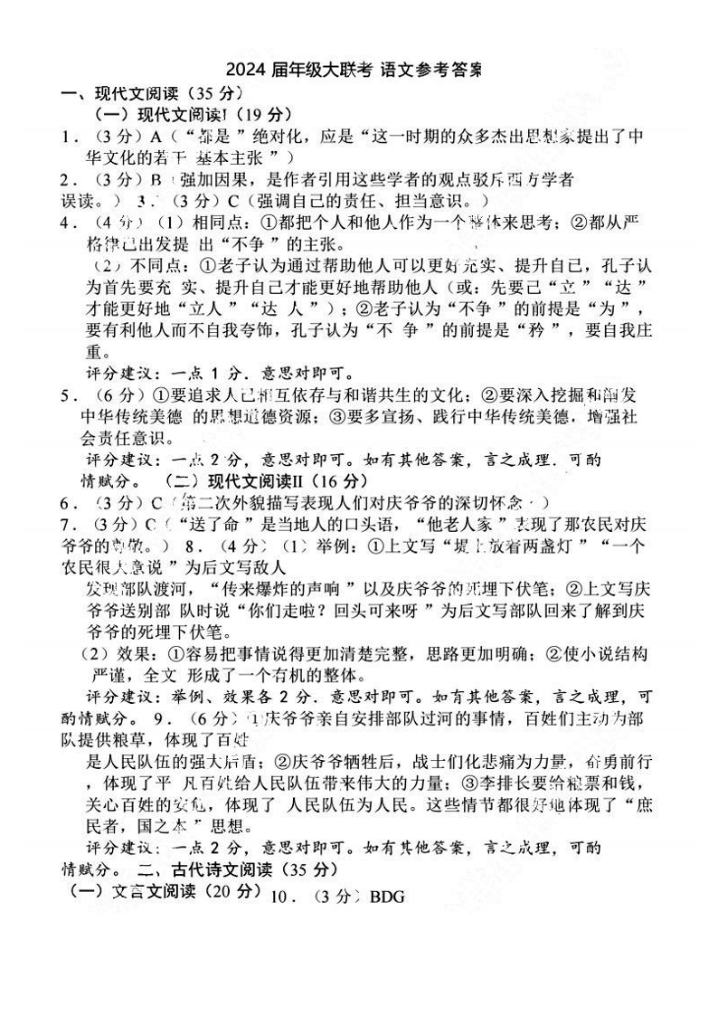 江苏省决胜新高考2023-2024学年高三上学期12月大联考 语文答案