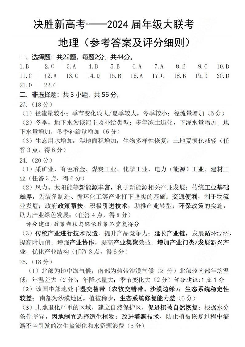 江苏省决胜新高考2023-2024学年高三上学期12月大联考 地理答案