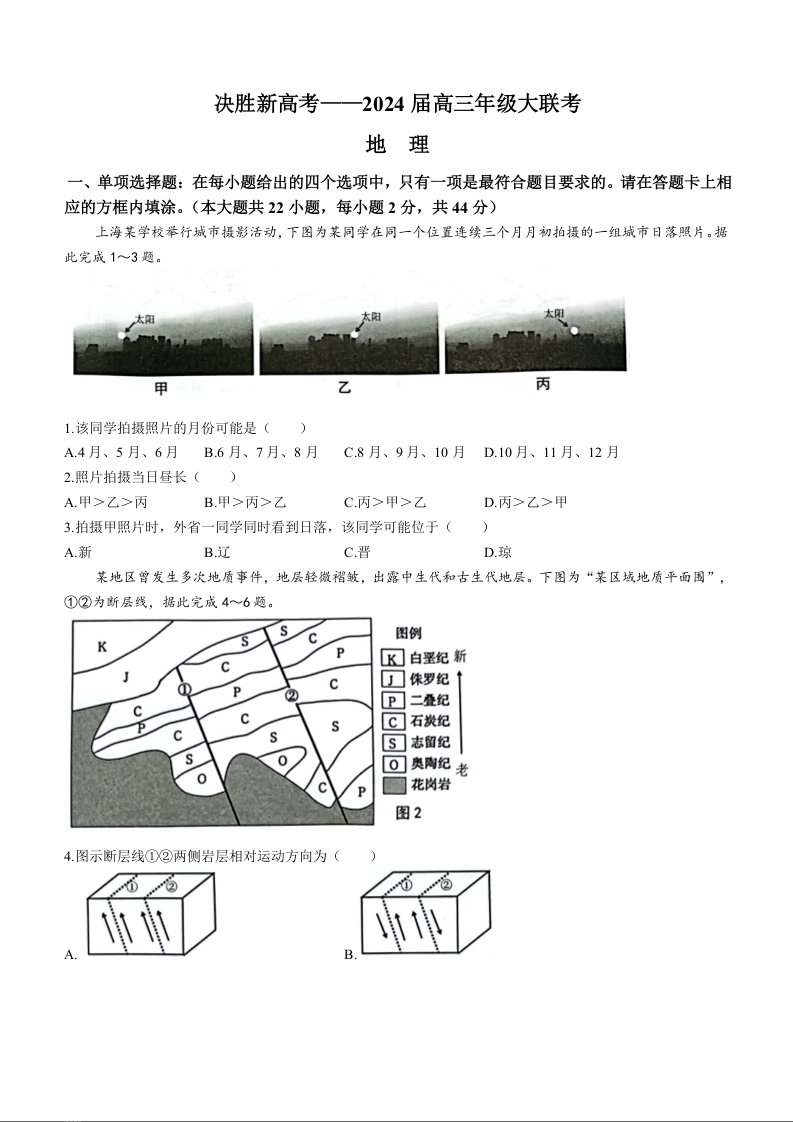 江苏省决胜新高考2023-2024学年高三下学期2月大联考 地理