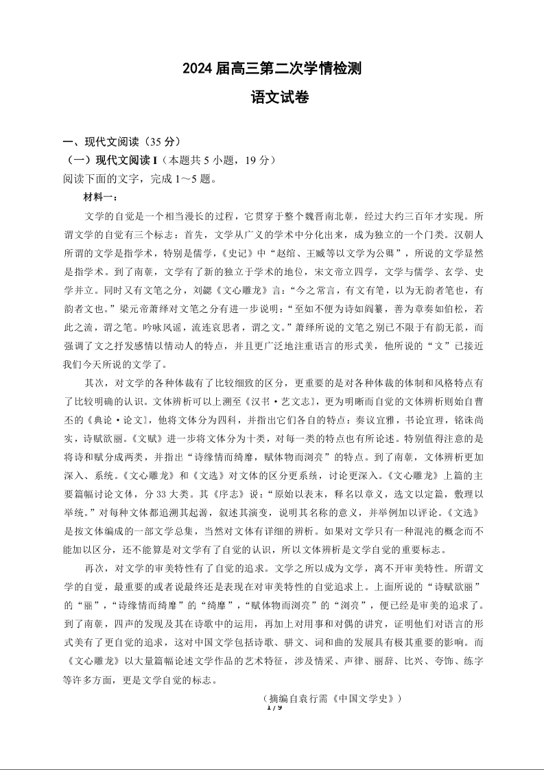 江苏省连云港市部分学校2023-2024学年高三上学期10月联考 语文
