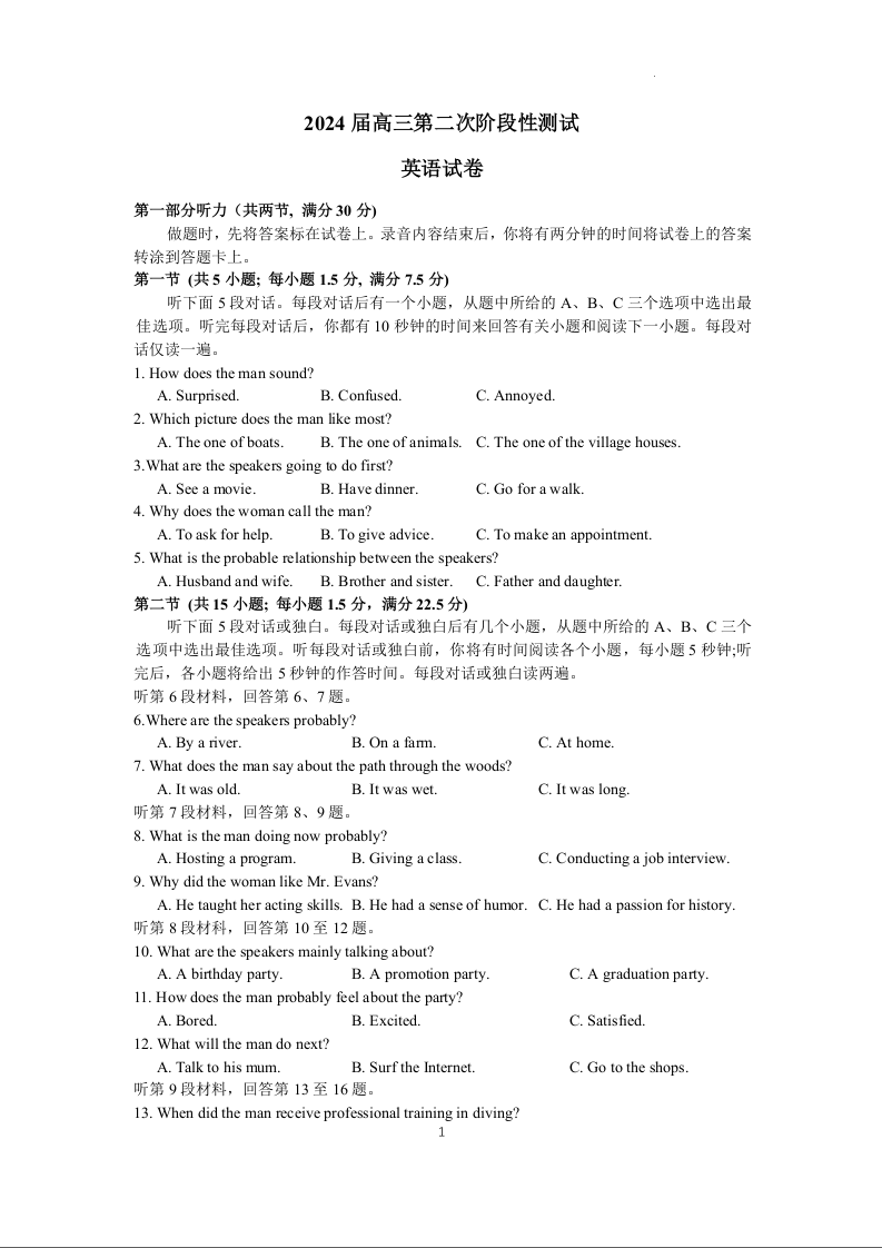 江苏省连云港市部分学校2023-2024学年高三上学期10月联考 英语