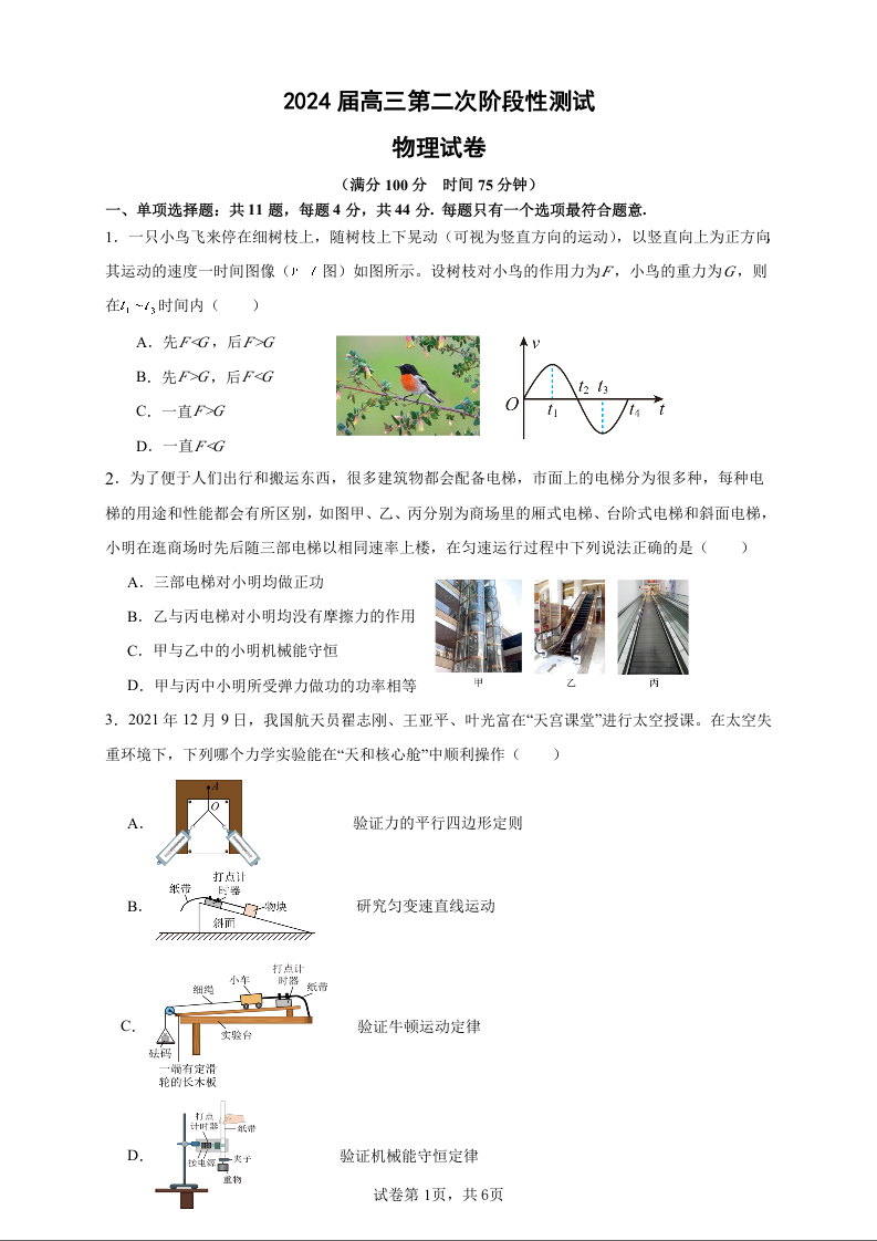 江苏省连云港市部分学校2023-2024学年高三上学期10月联考 物理