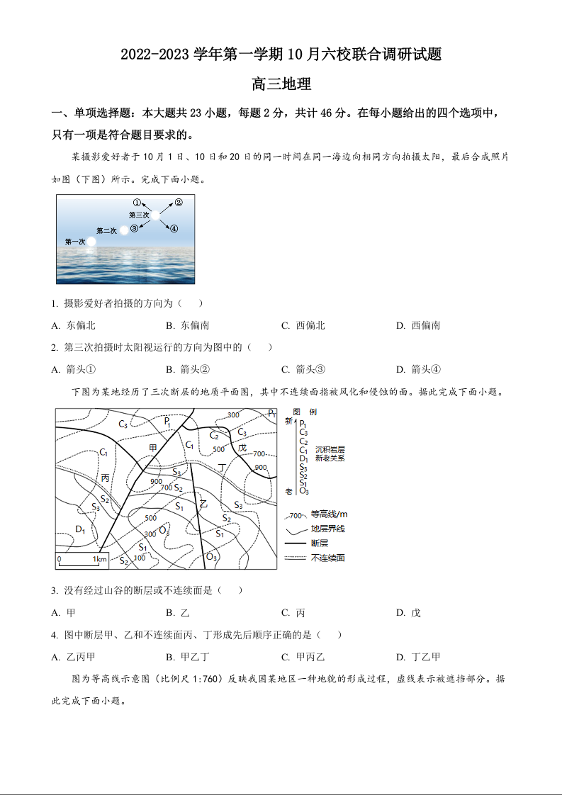 江苏省南京市六校联合体2023-2024学年高三上学期10月联合调研 地理