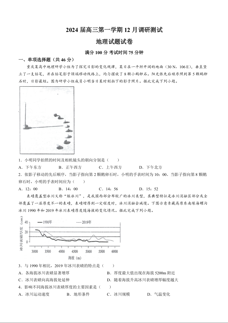 江苏省泰州中学、宿迁中学、宜兴中学2023-2024学年高三上学期12月调研测试 地理