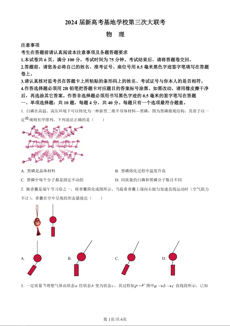 江苏省新高考基地学校2023-2024学年高三上学期第三次大联考 物理