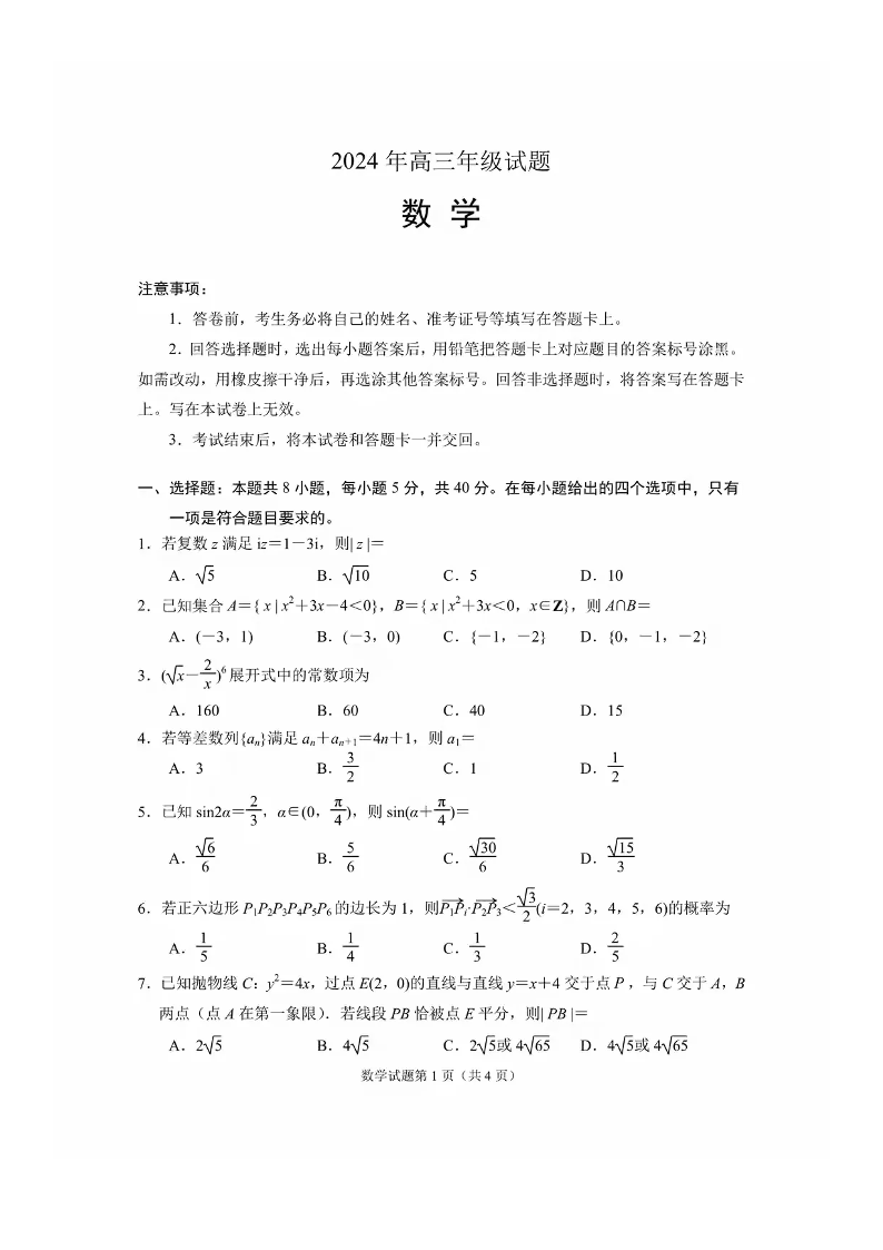 江苏省徐州市2024届高三下学期6月考前打靶试题+数学