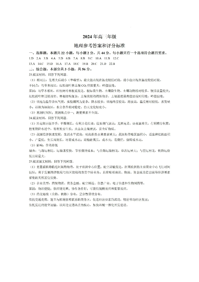 江苏省徐州市2024届高三下学期6月考前打靶试题+地理答案