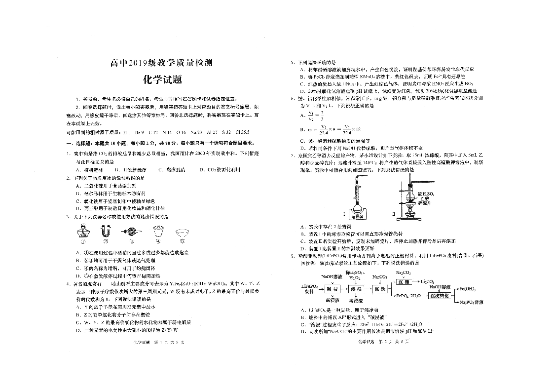 山东省青岛市2021.9高三年级开学教学质量检测化学