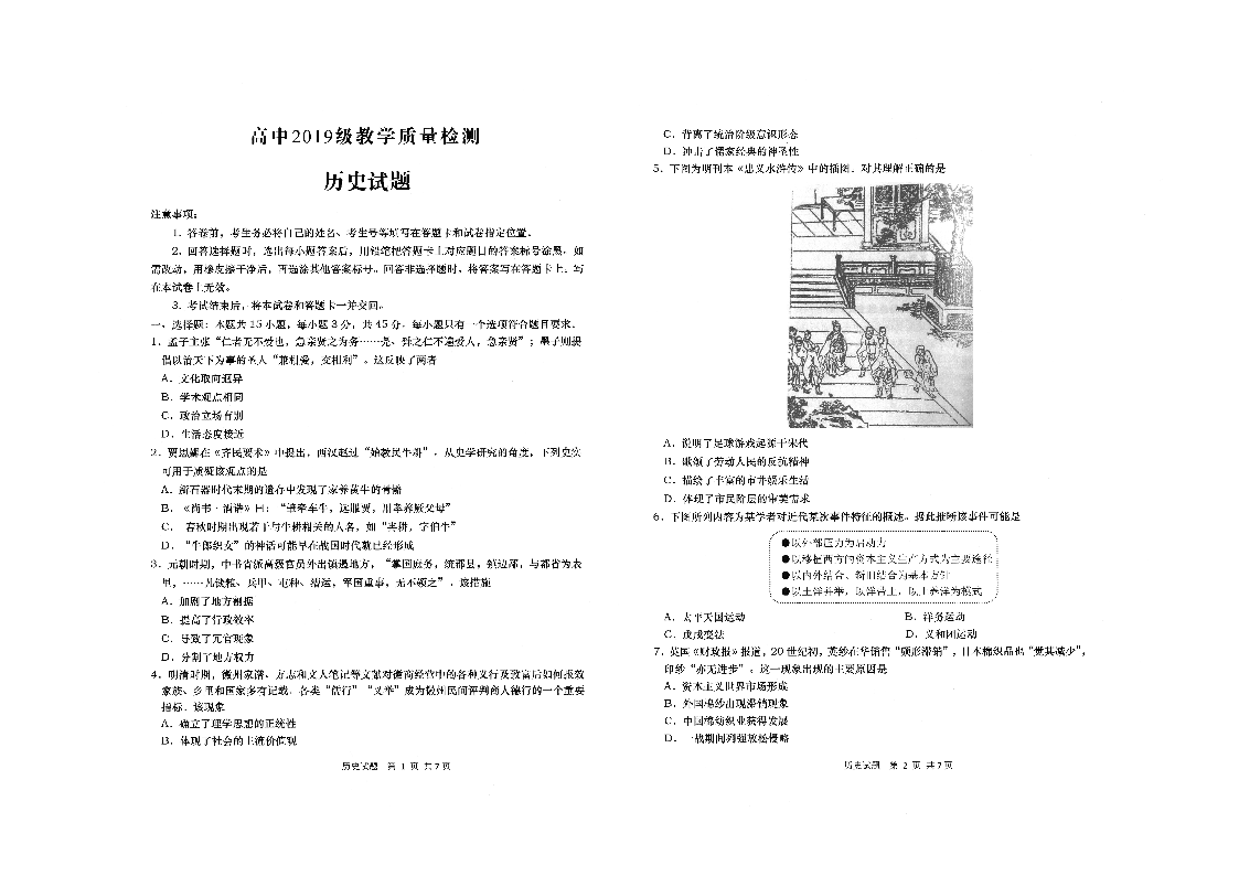山东省青岛市2021.9高三年级开学教学质量检测历史