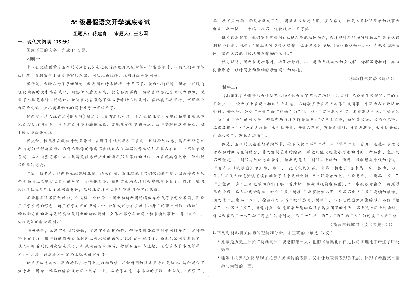 济南市历城二中2021.9高三年级开学检测语文