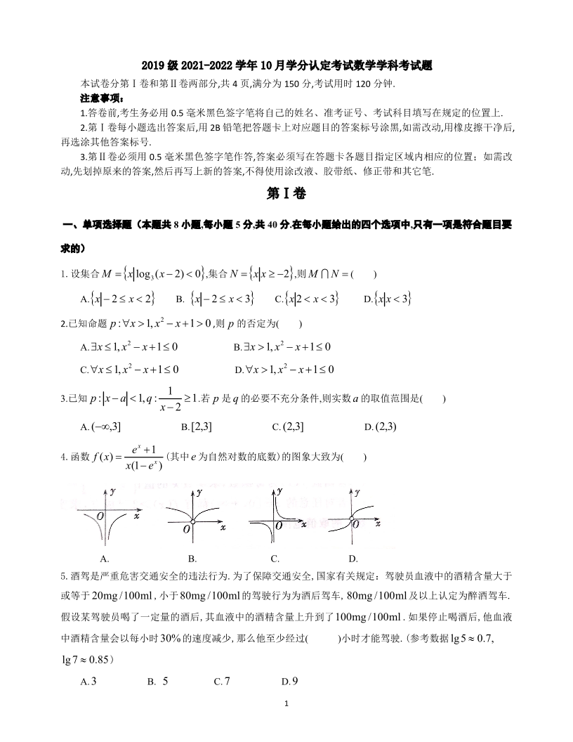 山东师大附中2021.10高三年级阶段检测数学