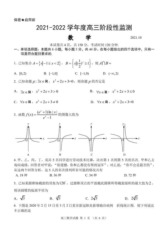 山东省潍坊市五县区2021.10高三年级阶段性监测数学