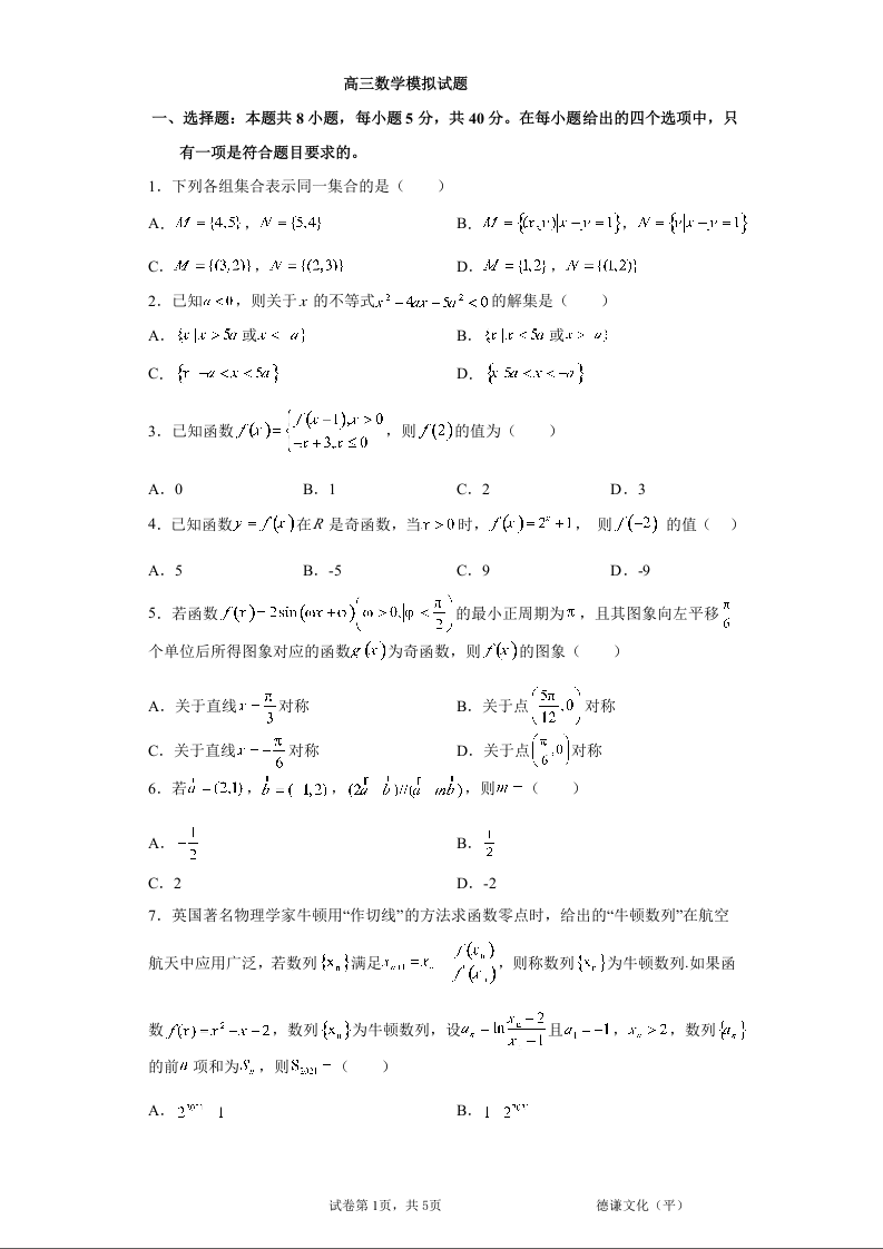 济南外国语学校2021.11高三年级模拟考试数学及答案