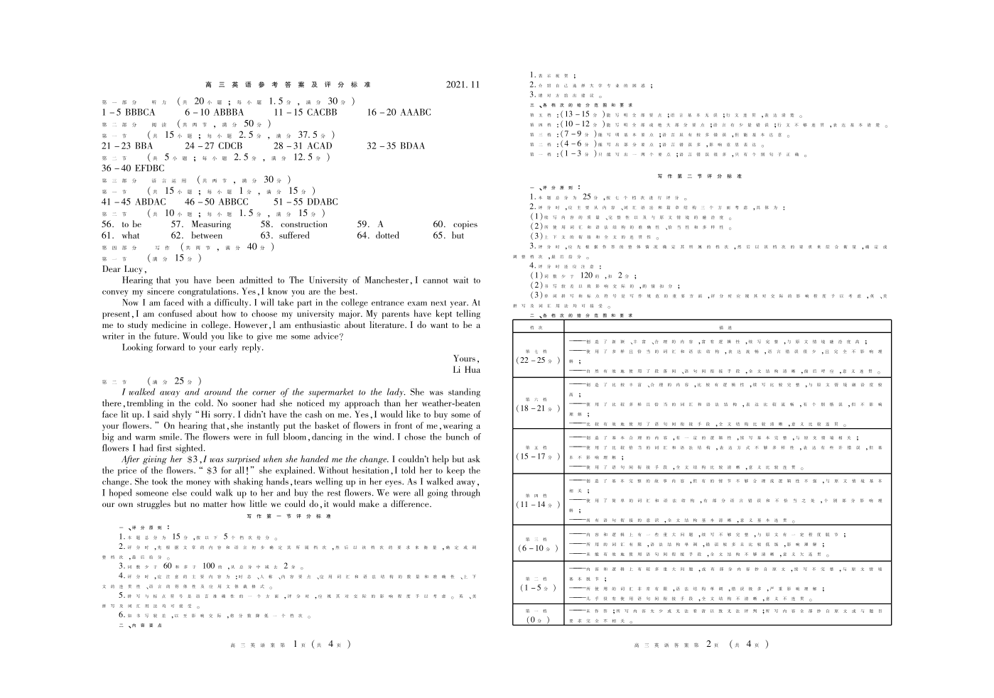 山东省潍坊市2021.11高三年级期中考试英语答案
