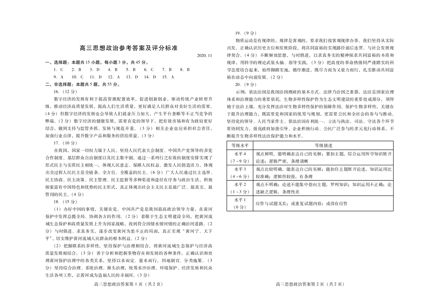 山东省潍坊市2021.11高三年级期中考试政治答案