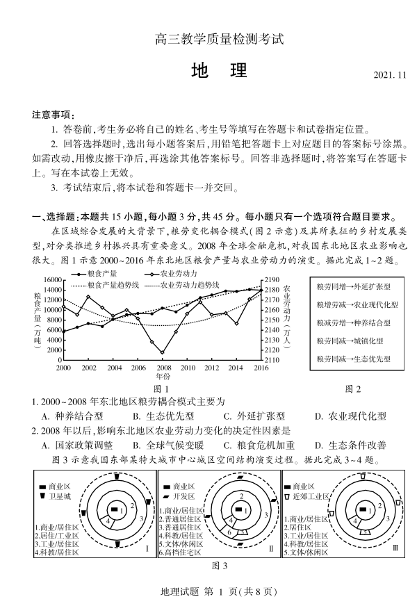 山东省临沂市2021.11高三年级期中考试地理及答案