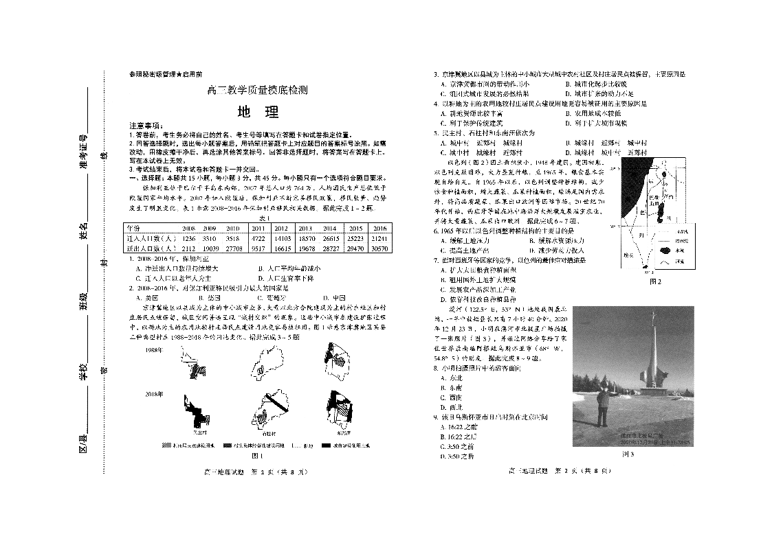 山东省淄博市2021.12高三年级期末摸底考试地理