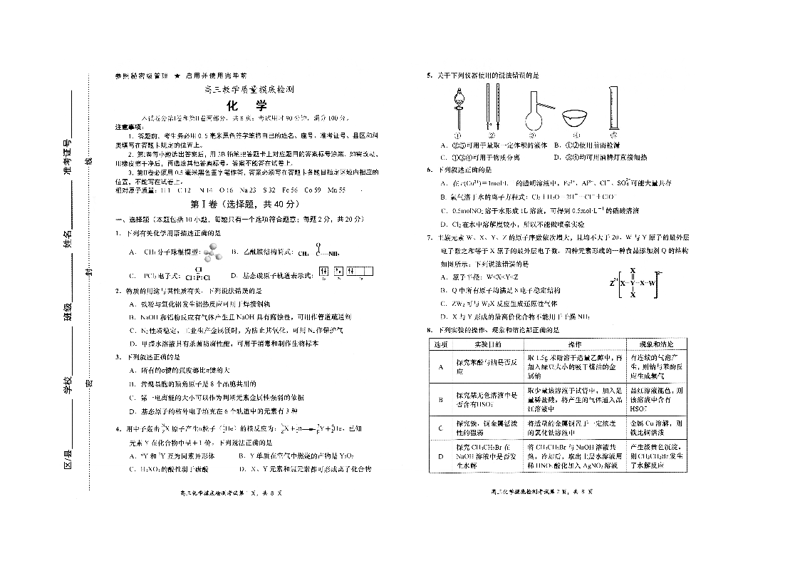 山东省淄博市2021.12高三年级期末摸底考试化学