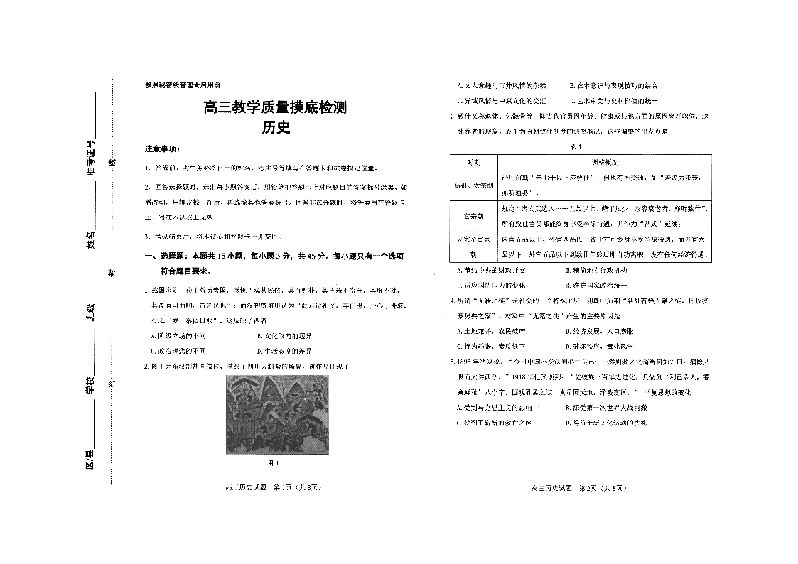 山东省淄博市2021.12高三年级期末摸底考试历史