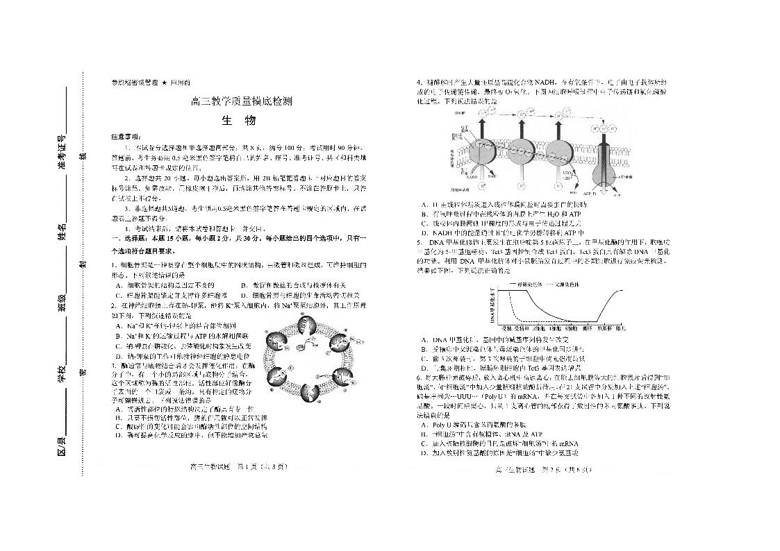 山东省淄博市2021.12高三年级期末摸底考试生物