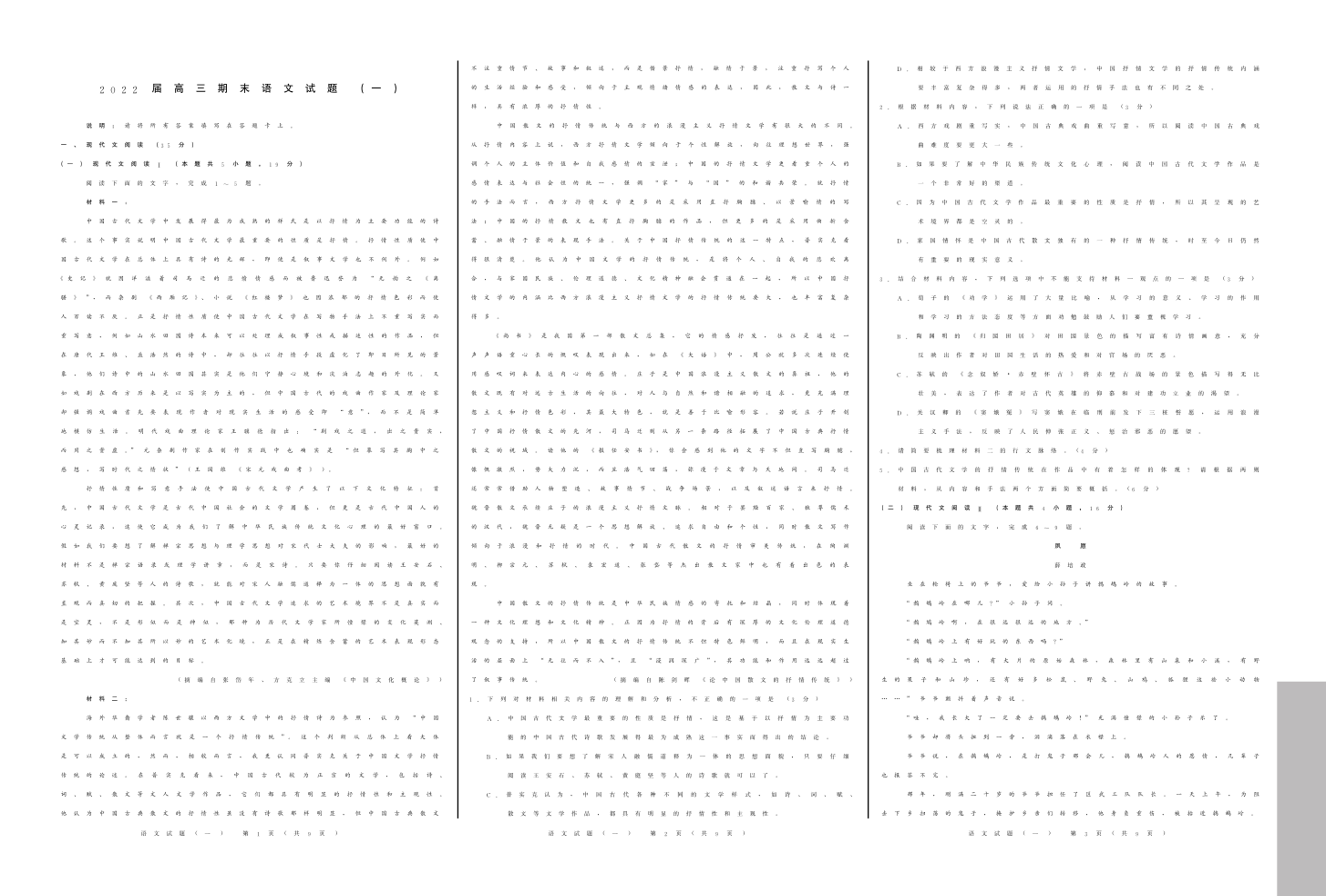 山东省烟威滨莱2022.1高三年级期末检测语文