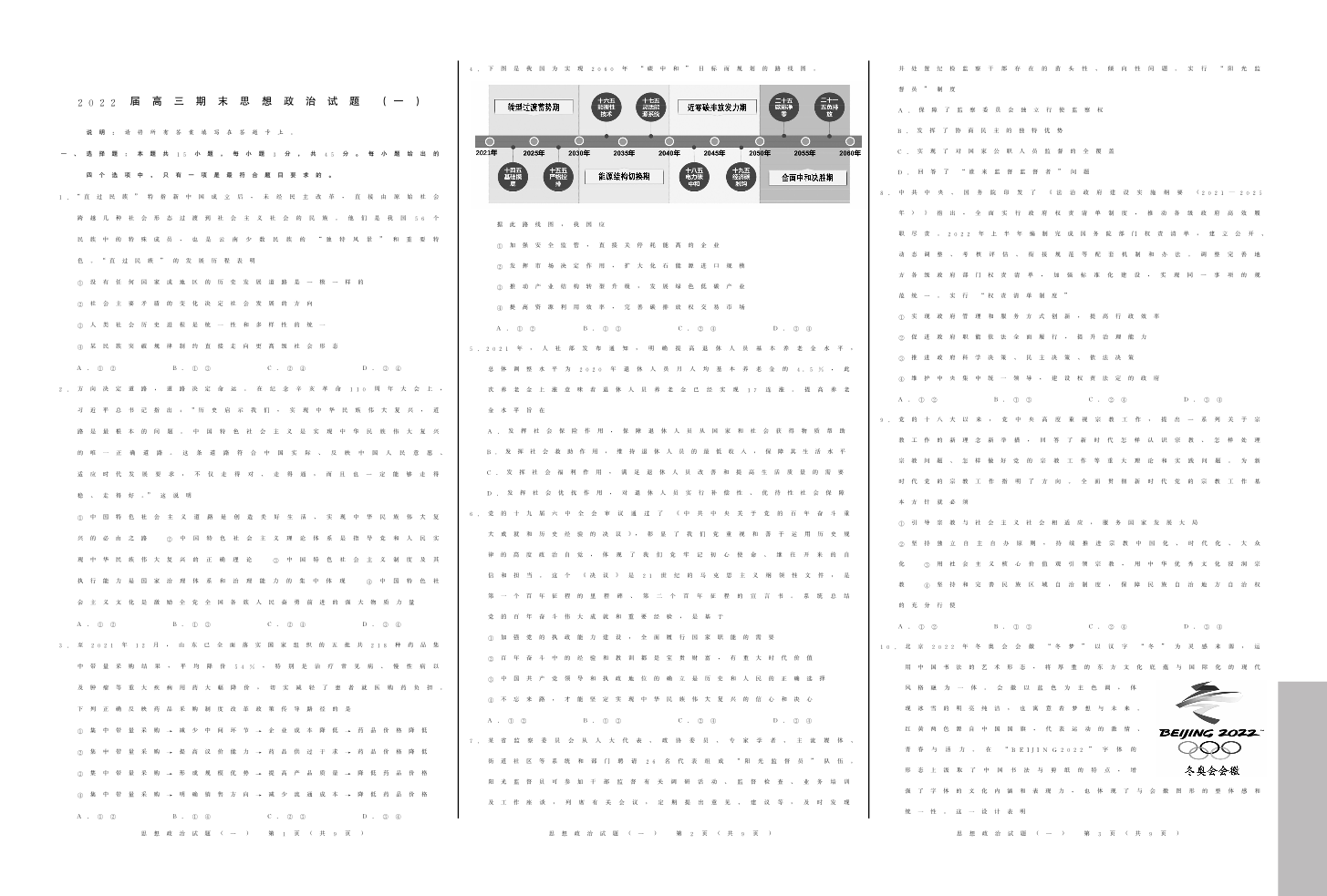 山东省烟威滨莱2022.1高三年级期末检测政治