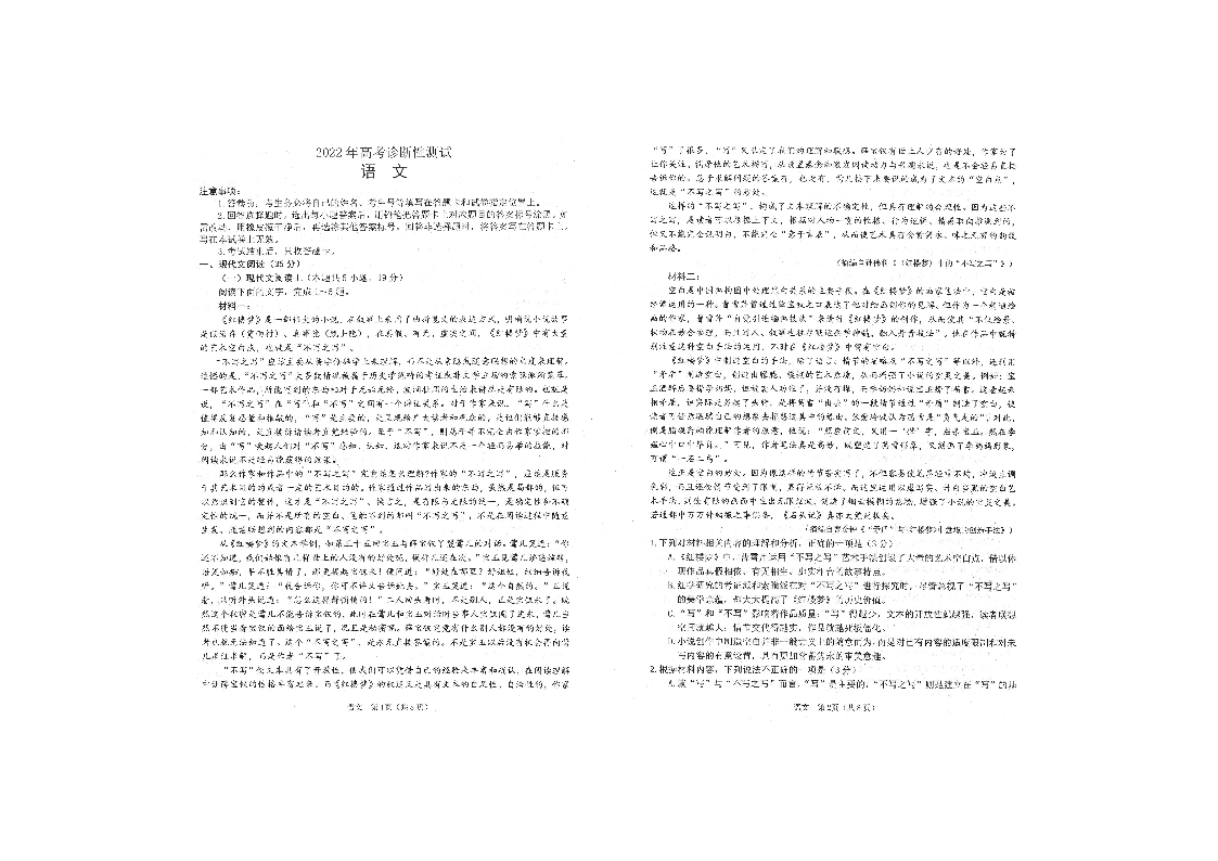 山东省烟台市2022.3高三年级第一次模拟试题语文