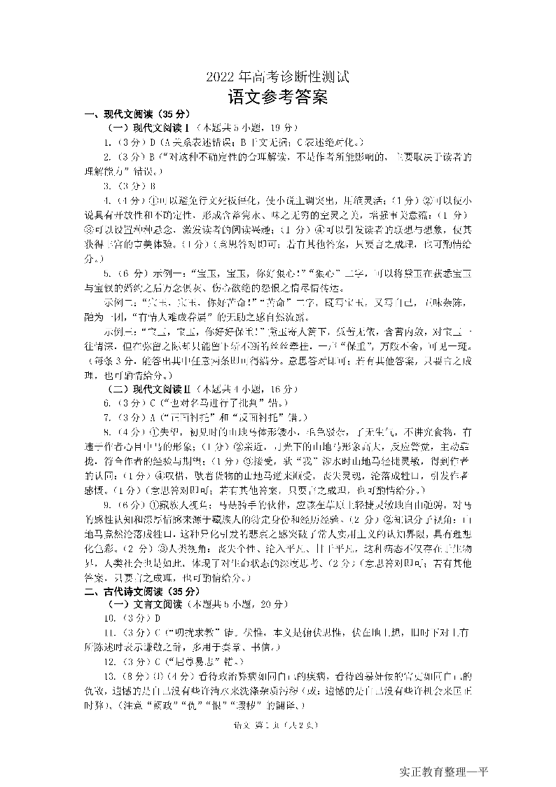 山东省烟台市2022.3高三年级第一次模拟试题语文答案
