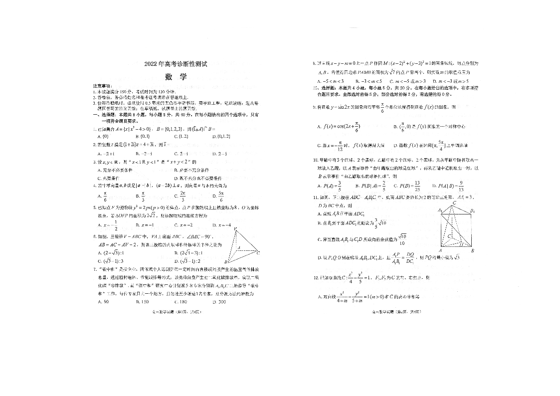 山东省烟台市2022.3高三年级第一次模拟试题数学