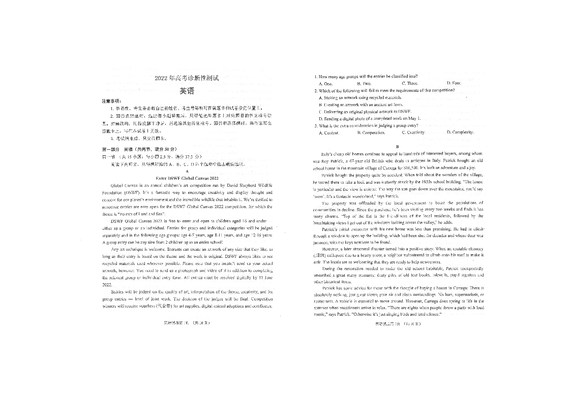 山东省烟台市2022.3高三年级第一次模拟试题英语