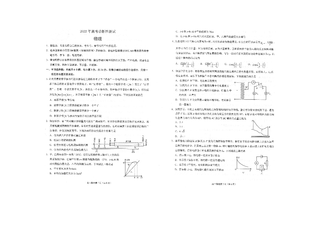 山东省烟台市2022.3高三年级第一次模拟试题物理