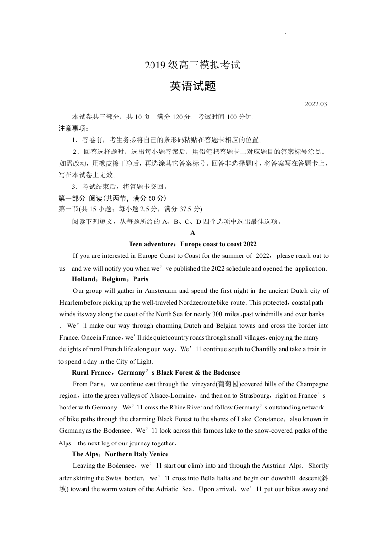 山东省日照市2022.3高三年级第一次模拟试题英语