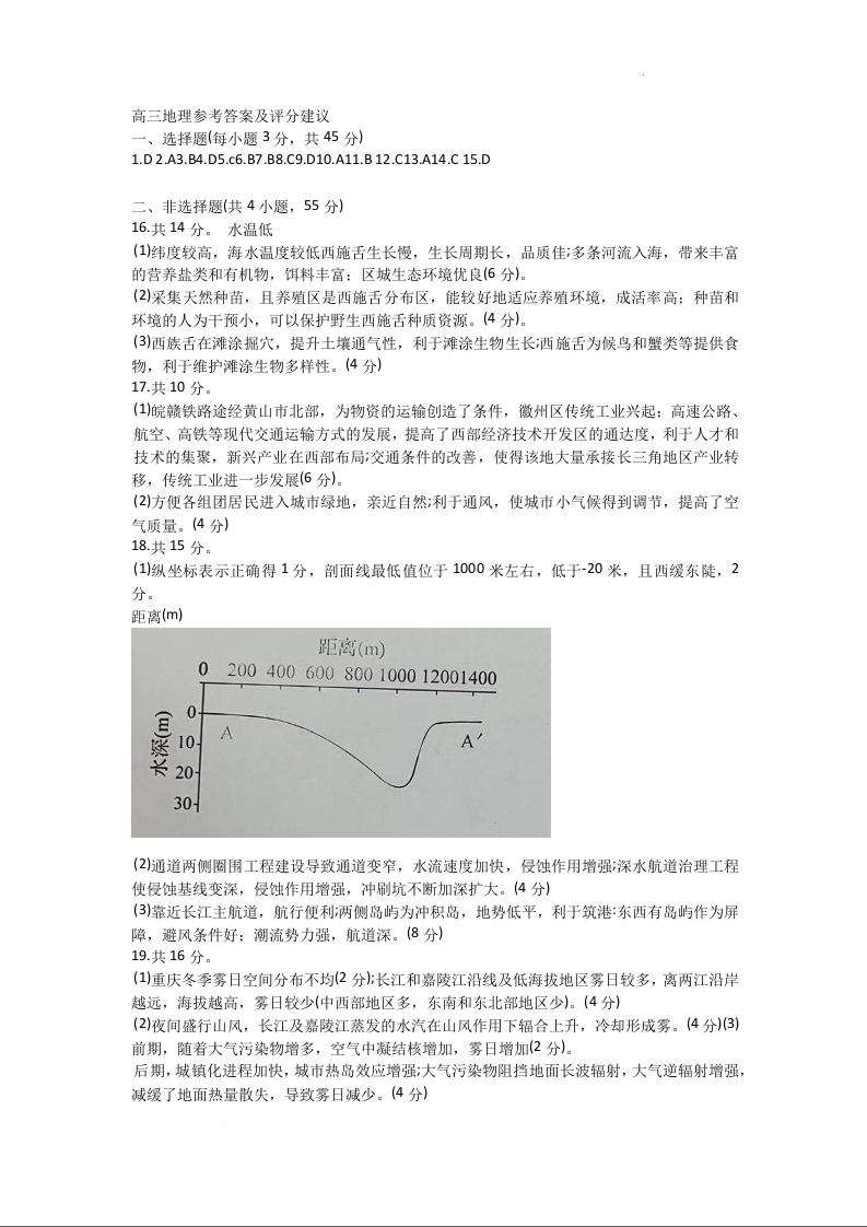 山东省日照市2022.3高三年级第一次模拟试题地理答案
