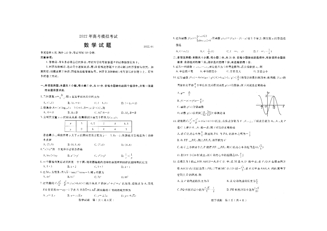 山东省济宁市2022.5高三年级第二次模拟试题数学