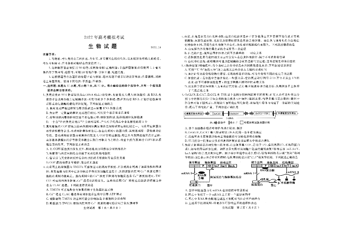 山东省济宁市2022.5高三年级第二次模拟试题生物